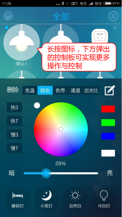 藍牙(Bluelooth)無線自組網(wǎng)技術(shù)實現(xiàn)互聯(lián),設備與設備之間級聯(lián),實現(xiàn)不受限的網(wǎng)絡覆蓋范圍。這是一種基于藍牙的無線智能照明控制系統(tǒng),其包括智能照明設備、無線控制設備及可控制、配置該照明控制系統(tǒng)的移動端APP軟件。