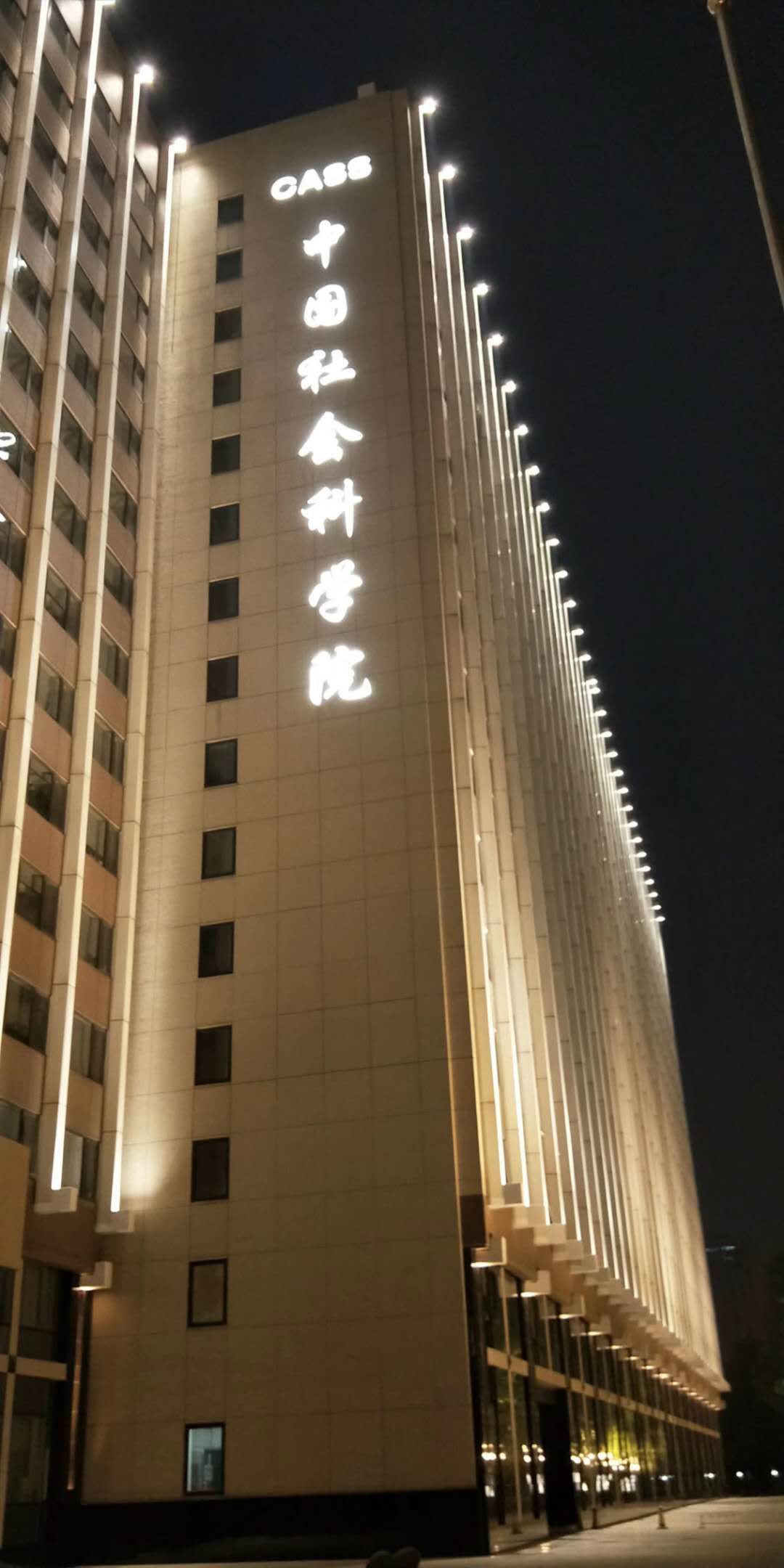 設(shè)置不同的場景模式可以讓夜色中的照明無需再在長時間內(nèi)保持同一種過高的亮度照明需求,那樣所產(chǎn)生的電量也是沒有必要的。利用調(diào)光模塊可根據(jù)時間人流量大小來設(shè)定亮度,一鍵切換,方便快捷。下圖是社會科學(xué)院在夜色中的照明亮化。