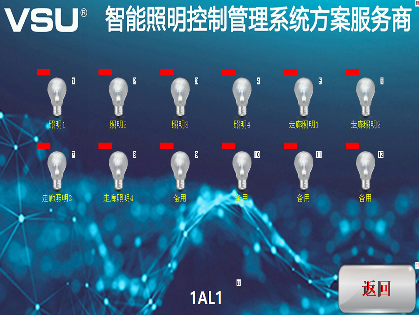 該項(xiàng)目中在智能照明領(lǐng)域采用的是VSU-NET總線型智能照明控制系統(tǒng),8路、12路、16路16A智能照明模塊、6鍵面板、7寸觸摸屏、電源模塊、網(wǎng)關(guān)模塊、級(jí)聯(lián)模塊等系列設(shè)備形成整個(gè)智能化照明控制系統(tǒng)。