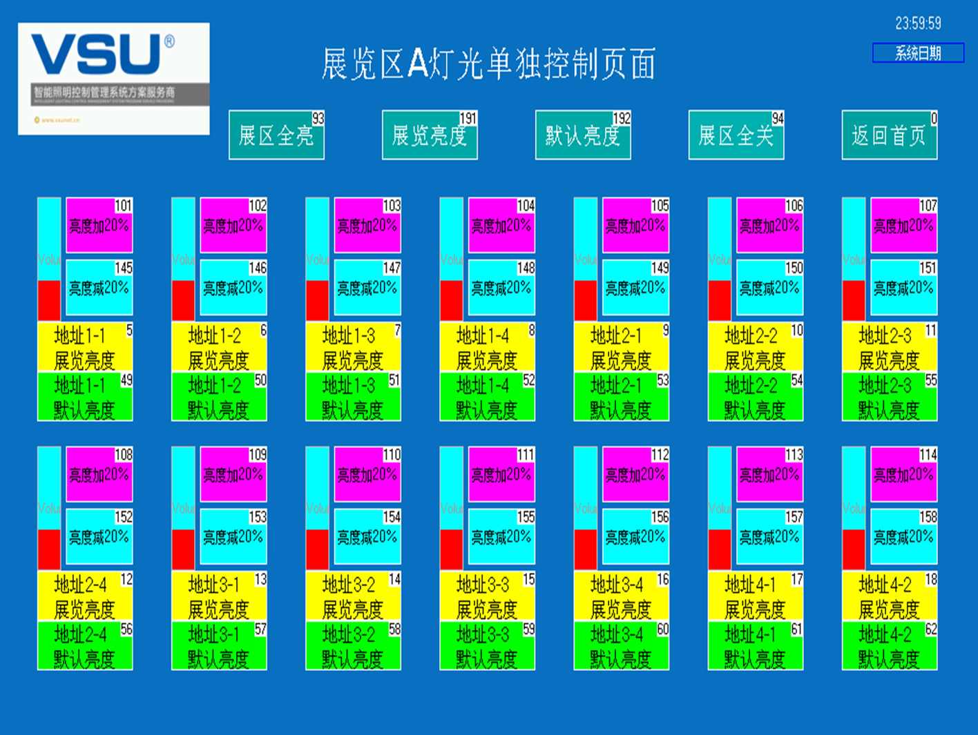 該項(xiàng)目采用的VSU照明設(shè)備有:4路16A智能照明模塊、人體感應(yīng)器、6路IO模塊、智能6鍵面板、網(wǎng)關(guān)主機(jī)、電源模塊、7寸安卓觸摸屏。自動(dòng)感應(yīng)人流,調(diào)節(jié)燈光亮度,在不減少旅客游覽體驗(yàn)的情況下節(jié)省電能消耗。