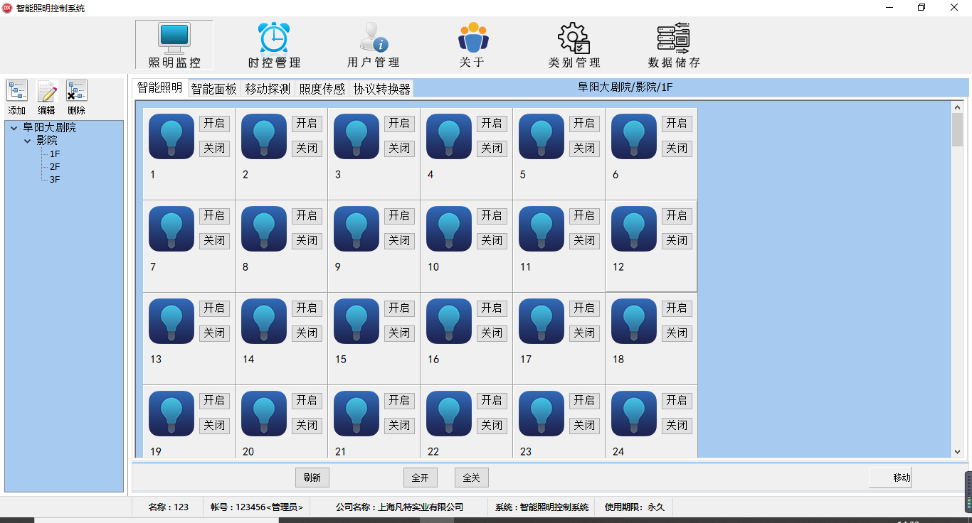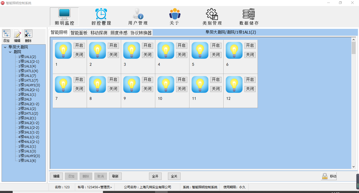 智能照明控制系統(tǒng)可在管理中心通過電腦遠程控制整個劇場的燈光,實現(xiàn)一鍵全開、全關(guān),亦可控制每個回路的開關(guān),預(yù)設(shè)上、下班時間自動開啟、關(guān)閉整個場地的燈光,避免漏關(guān)、錯關(guān)等現(xiàn)象,不同場館功能廳都有其專屬的控制方式。例如:阜陽圖書館的藏書區(qū)域出入頻繁,但不必常亮的區(qū)域,采用紅外感應(yīng)控制,可實現(xiàn)人到燈亮,人走燈延時熄滅的效果,既能最大限度節(jié)約能源,又能保證照明需求;閱覽室則通過照度控制和定時控制,光照傳感器根據(jù)室外環(huán)境光照調(diào)光,保證合適的閱讀照度,同時節(jié)約能源。阜陽大劇院多功能廳表演區(qū)域主要采用調(diào)光控制、場景控制,通過實現(xiàn)場景的預(yù)設(shè)置和記憶功能,只需操作控制面板即可開啟一個燈光場景,各照明回路隨即能自動變換到相應(yīng)的狀態(tài),通過調(diào)光在不同表演需求中產(chǎn)生不同的燈光效果,營造最舒適的觀感效果。