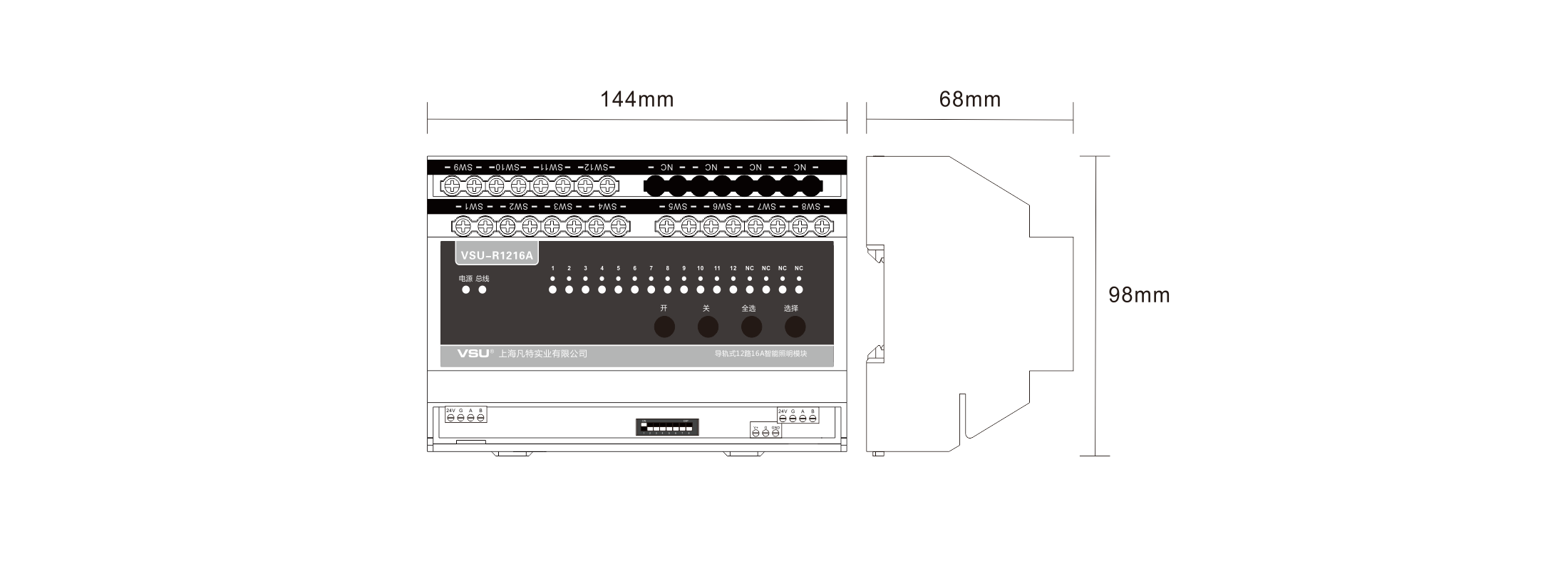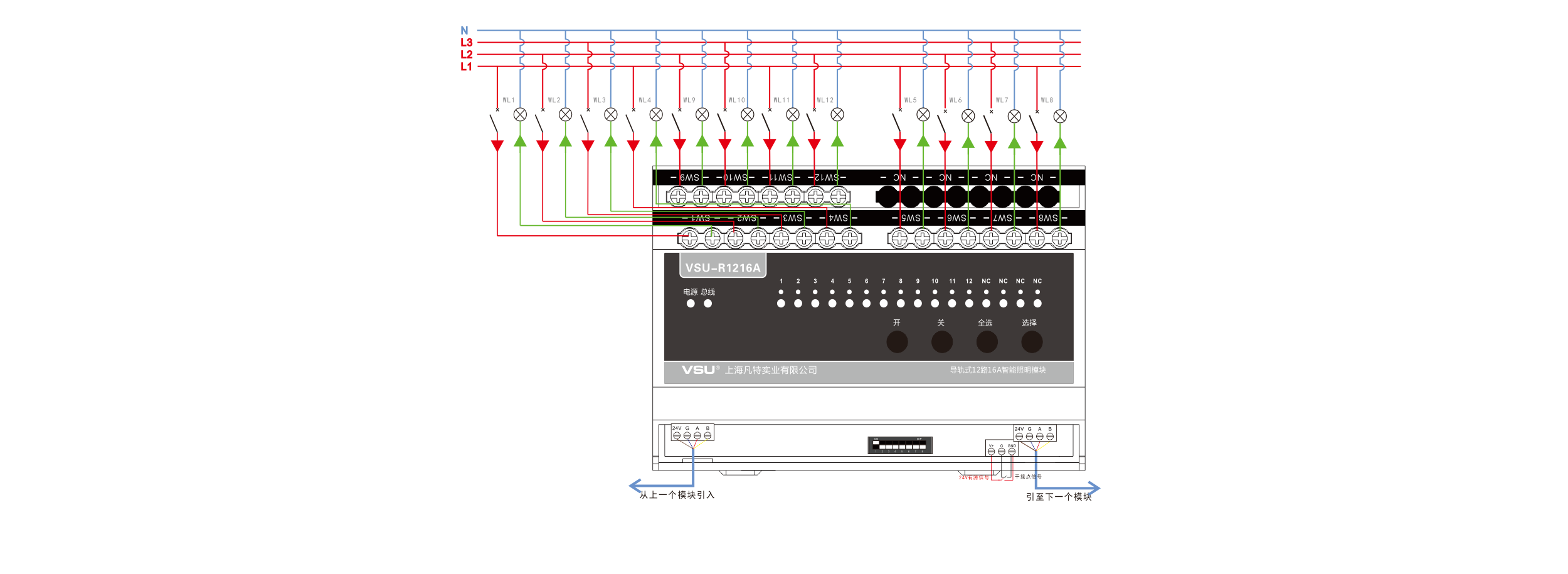 本產(chǎn)品為導(dǎo)軌式安裝,含12路智能繼電器,每回路可獨(dú)立控制3520W燈具的開關(guān),帶應(yīng)急按鍵,LED燈實(shí)時(shí)指示各個回路開關(guān)狀態(tài),可設(shè)置為互鎖控制6組窗簾開合; |