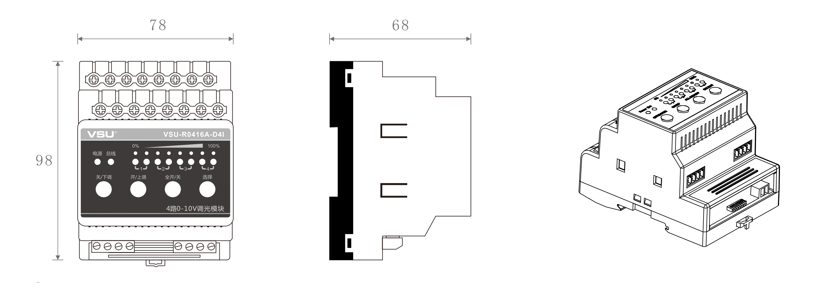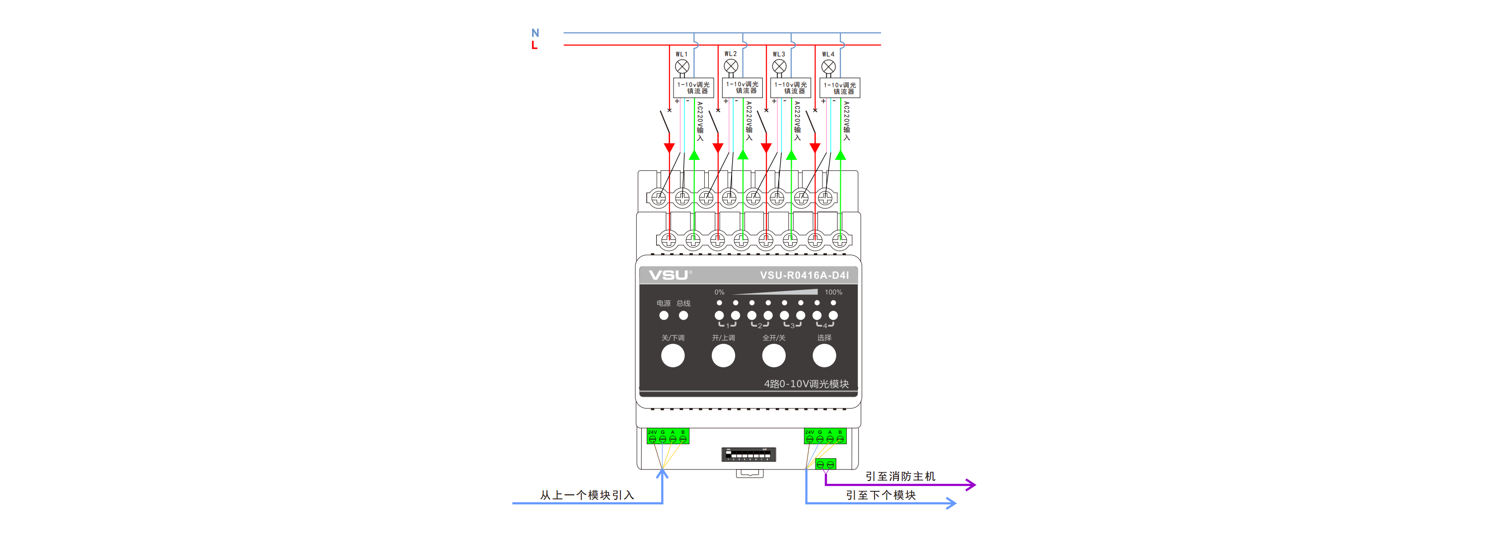2,提供4路16A繼電器開關和4路0-10V調光信號;