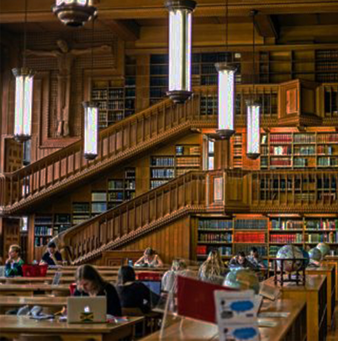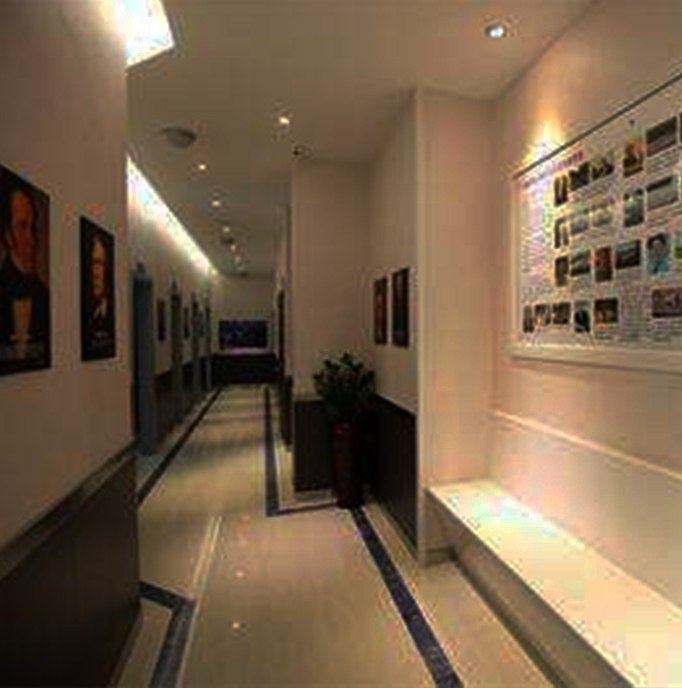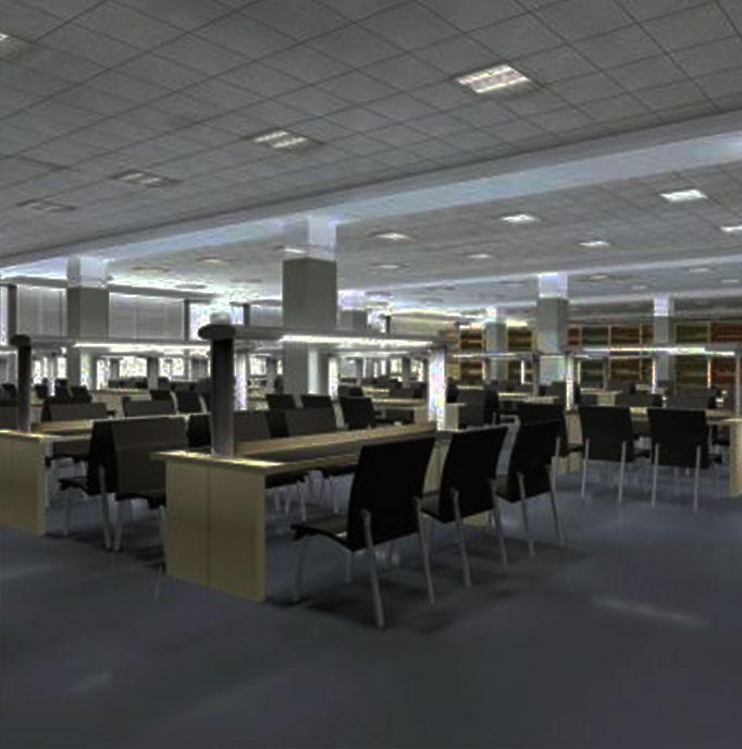 控制藏書區(qū)和閱覽區(qū)。藏書區(qū)采用多功能傳感器控制和定時控制。當藏書區(qū)開放時自動開啟1/3隔燈照明,保證基本照度。有人進入時多功能傳感器自動開啟該區(qū)域的燈光,方便取閱。取閱者離開后延時關閉該區(qū)域燈光以節(jié)約電能。藏書區(qū)停止使用時延時關燈;閱覽室則采用照度控制和定時控制。照度傳感器根據(jù)室外光照自動控制窗邊燈光和電動窗簾,保證合適的閱讀照度,同時節(jié)約能源。閱覽室停止使用時延時關燈。