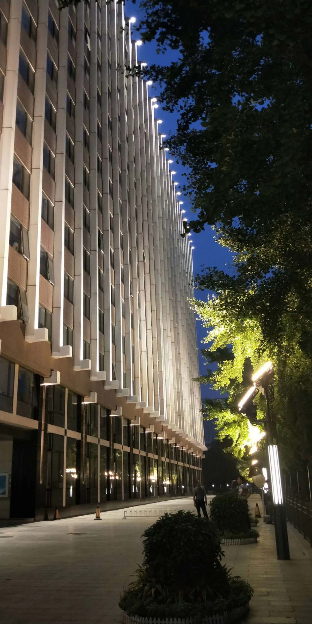 設(shè)置不同的場景模式可以讓夜色中的照明無需再在長時間內(nèi)保持同一種過高的亮度照明需求,那樣所產(chǎn)生的電量也是沒有必要的。利用調(diào)光模塊可根據(jù)時間人流量大小來設(shè)定亮度,一鍵切換,方便快捷。下圖是社會科學(xué)院在夜色中的照明亮化。
