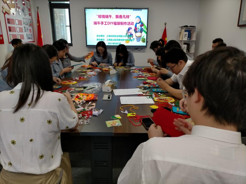 6月7日中午,由上海凡特實業(yè)有限公司黨支部主辦,上海金山區(qū)吾愛吾家為民服務(wù)社承辦的“粽情端午,飄香凡特”端午手工福袋制作活動在凡特公司會議室舉行,凡特公司黨政領(lǐng)導(dǎo)與全體員工參加了活動?;顒娱_始,在服務(wù)社章老師的指導(dǎo)下,每位員工根據(jù)自己的想象,創(chuàng)意進(jìn)行了端午手工福袋的制作。經(jīng)過1個小時的活動,一個個精致的別具特色的福袋制作成功,你看,他們背著自己制作的福袋,享受著成功的喜悅。同時吾愛吾家為民服務(wù)社還給凡特公司員工送來了自己包的粽子,提前祝凡特公司員工端午節(jié)快樂。