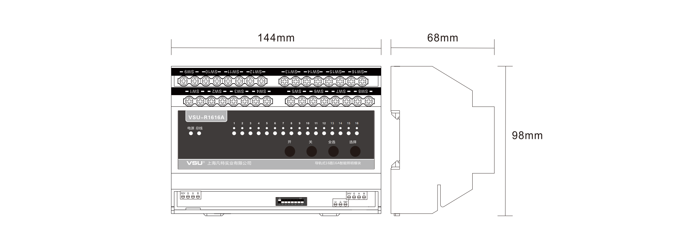本產(chǎn)品為導軌式安裝,含16路智能繼電器,每回路可獨立控制3520W燈具的開關,帶應急按鍵,LED燈實時指示各個回路開關狀態(tài),可設置為互鎖控制8組窗簾開合; |