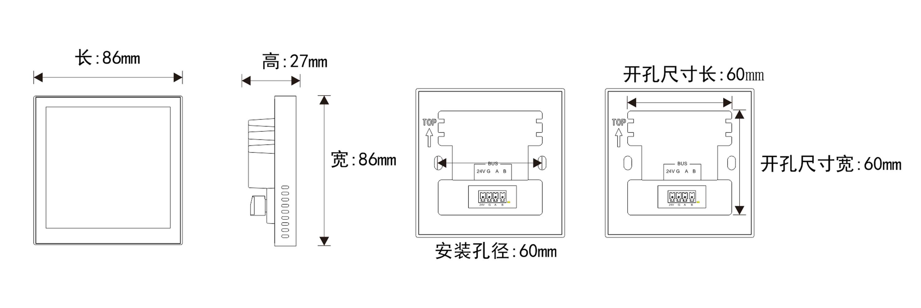 標準86盒安裝,4寸真彩屏,單控開關(guān)、窗簾和場景總線控制,可自定義界面支持3D文字、3D圖片,個性化界面;用于集中控制,支持雙向通信,安裝方便,接口靈活,適用于各種多媒體中央控制系統(tǒng)。