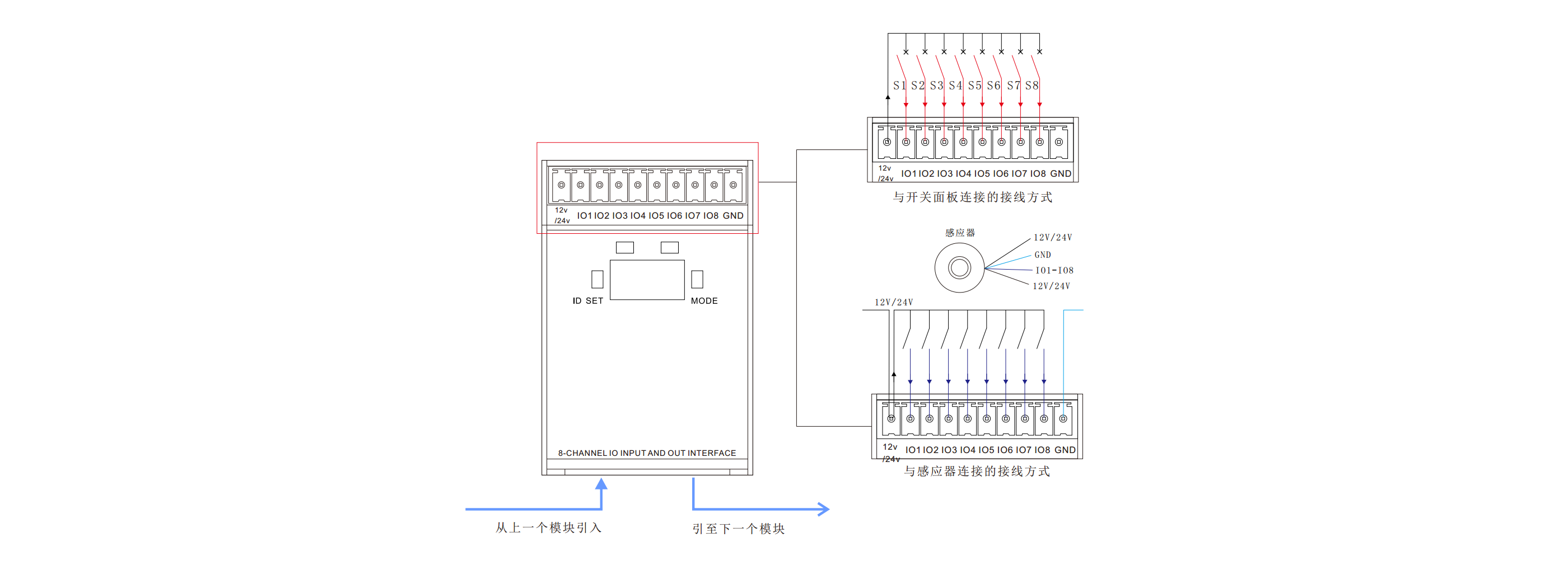 1.提供8路IO輸入接口,可接機(jī)械按鍵和門(mén)磁、人感等IO輸入信號(hào),識(shí)別按鍵短按按下,短按松開(kāi)或長(zhǎng)按,長(zhǎng)按松開(kāi)嵌入總線;