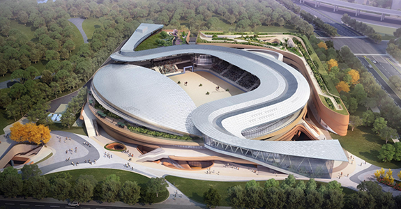 項目概述: 上海久事國際馬術(shù)中心,位于黃浦江畔世博文化公園南部,是世博文化公園南區(qū)重要和特殊的組成部分,國內(nèi)首座符合國際頂級馬術(shù)賽事標(biāo)準(zhǔn)的專業(yè)性比賽場館。場館總建筑面積8.2萬平方米,主體建筑高度15米。該項目選址浦東新區(qū)世博文化公園C04-01a地塊,南臨通耀路,西臨濟(jì)明路,總用地面積3.32公頃,主體建筑包含1個90X60米的競賽場地、熱身場、訓(xùn)練場和高規(guī)格馬廄,以及約5000座觀眾與貴賓看臺等設(shè)施。